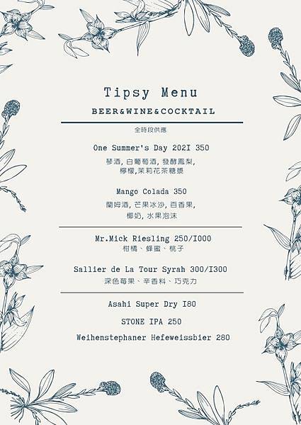 *酒類品項的菜單好像不太完整(取自店家INS)