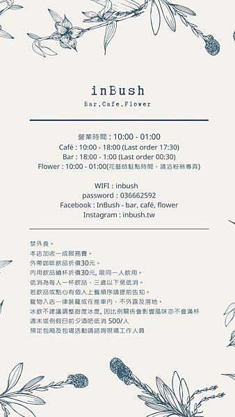 店家名稱 : inBush - Bar, Cafe, Flower